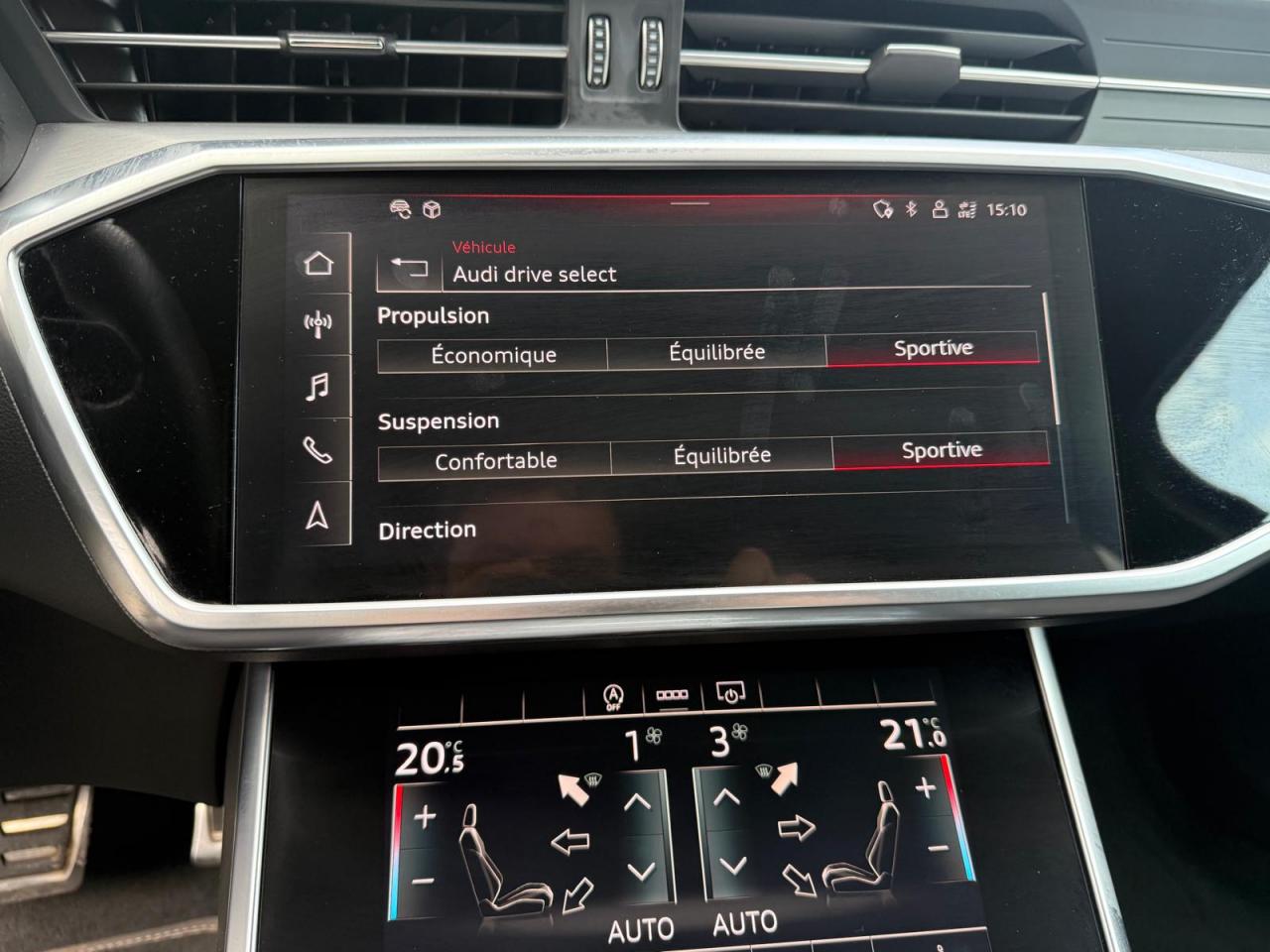 horizontal et vertical Appuie-tête pour sièges avant réglables manuellement en hauteur Audi connect avec carte SIM intégrée (e-SIM) et licence d'utilisation pour 3 ans Audi Drive Select Audi music interface (avant et arrière) Audi Parking System Plus Audi Phone Box Audi pre sense basic Audi pre sense front Audi smartphone interface Audi virtual cockpit plus Avertisseur de franchissement de ligne Badges extérieurs avec identification du modèle Bang & Olufsen Premium Sound System avec son 3D Banquette arrière 3 places "40/20/40" Boîtiers de rétroviseurs extérieurs style aluminium Buses de lave-glace chauffantes Caméra de recul Caméra multifonction pour système d'assistance à la conduite Châssis Sport S avec amortissement piloté Ciel de pavillon en tissu noir Clé confort incluant déverrouillage du coffre par capteur Climatisation automatique 4 zones Colonne de direction réglable manuellement en hauteur et en longueur Commande de désactivation de l'airbag passager à l'AV Design extérieur "S" avec pare-chocs avant/arrière