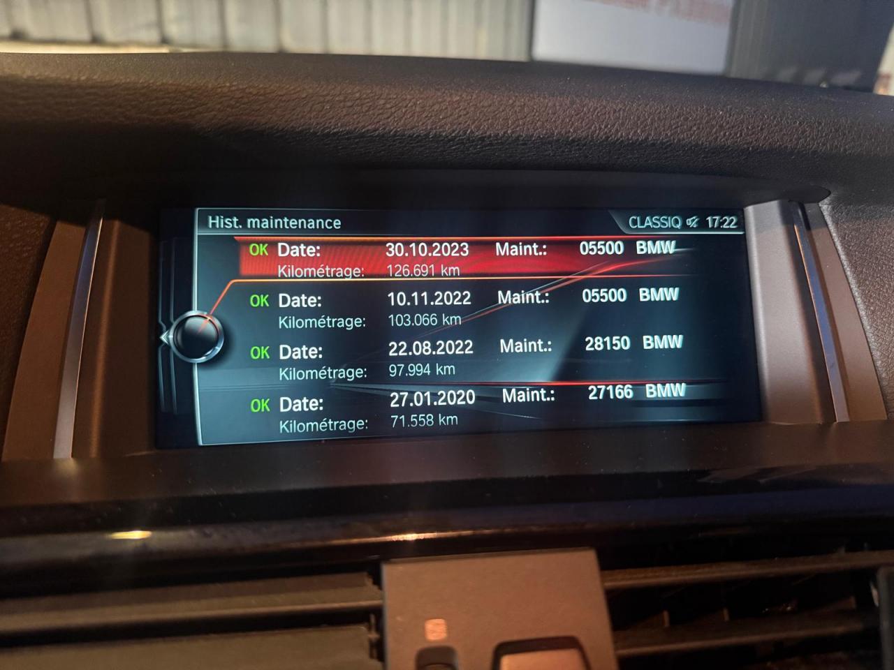 arrière et latéraux avec inserts couleur titane Indicateur de maintenance CBS tenant compte des conditions de conduite Inserts décoratifs en aluminium brossé Inserts décoratifs en chrome mat au niveau des entrées d'air latérales du bouclier avant Interface Bluetooth pour téléphone portable (mains-libres) Jantes en alliage léger 18? style 607 à rayons en Y Kit Eclairage Lave-phares Mesure individuelle de pression des pneumatiques Miroirs de courtoisie éclairés intégrés aux pare-soleil Navigation multimédia Professional Notice d'utilisation intégrée Ordinateur de bord avec Check-Control et indicateur de température extérieure Pare-chocs auto-régénérants jusqu'à 4 km/h avec éléments déformables jusqu'à 15 km/h Pneumatiques RSC permettant le roulage à plat Prises 12 V (4) : console centrale avant