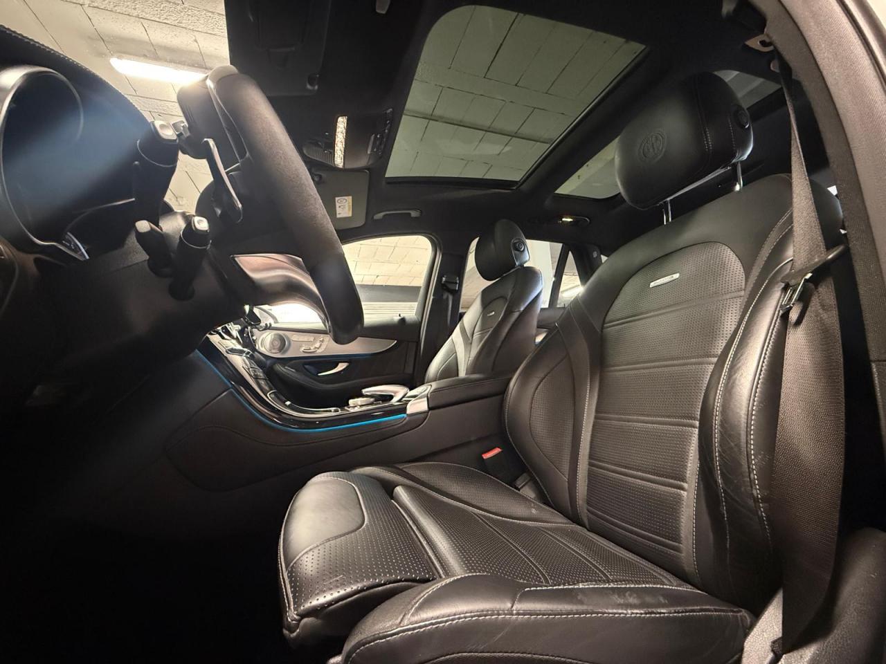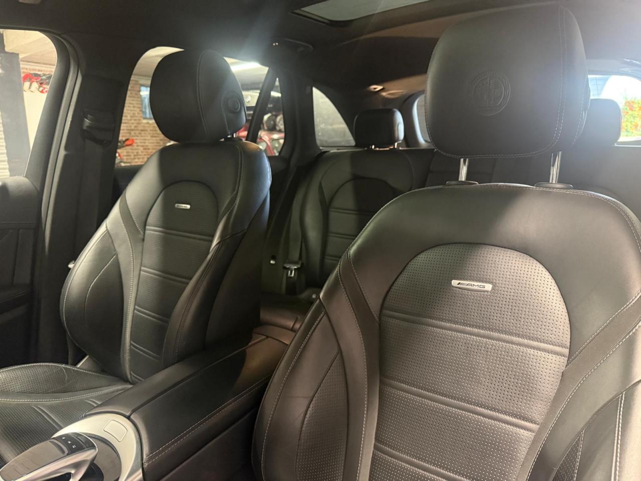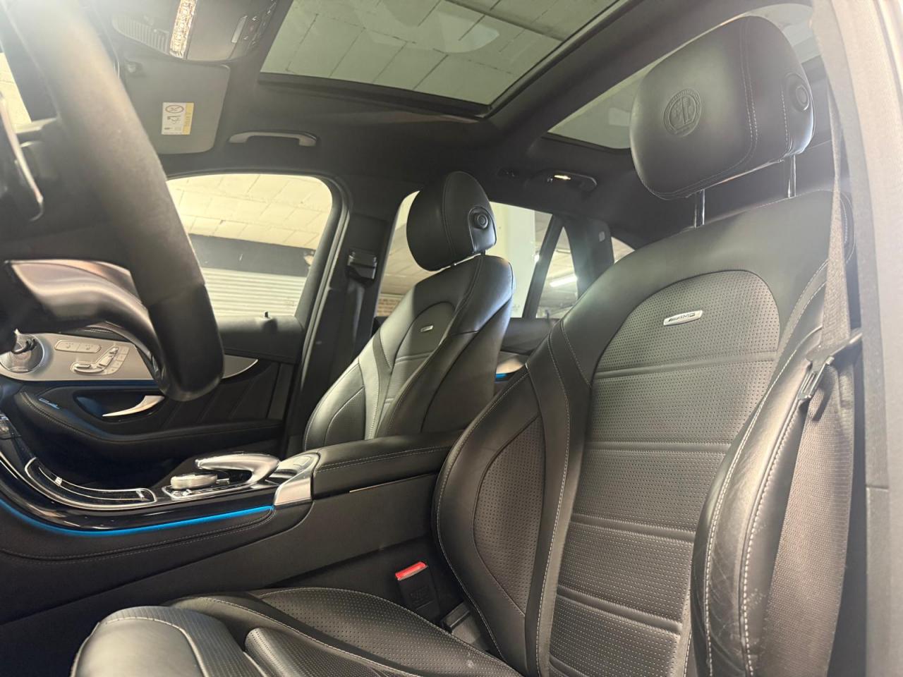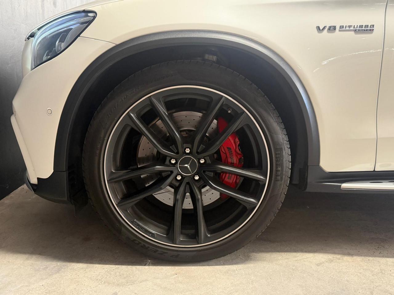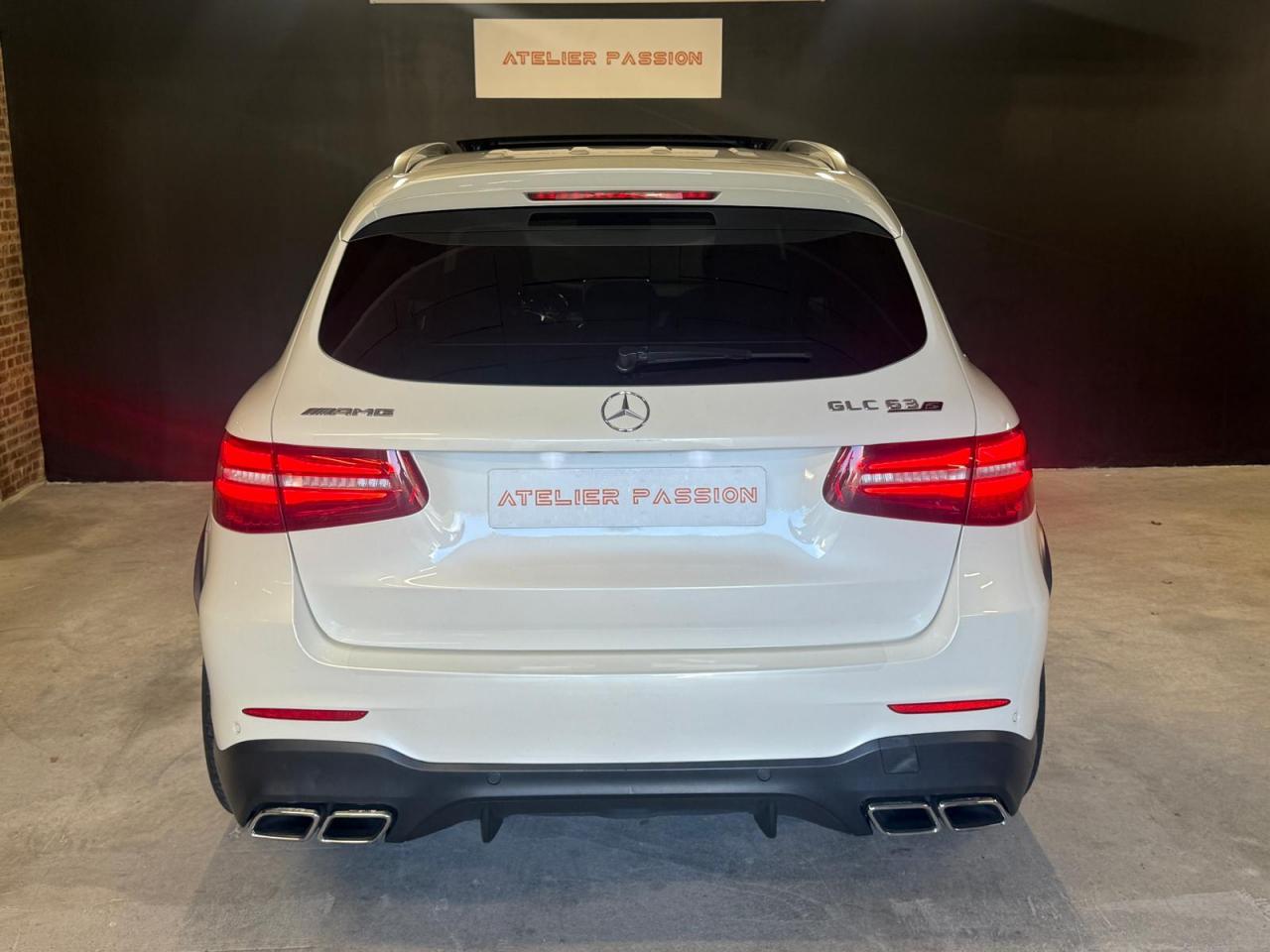 ABS (antiblocage de roues) et ASR (antipatinage) on et off-road Accoudoir central avant avec vide-poches et prise 12V ADAPTIVE BRAKE avec fonction HOLD et aide au démarrage en côte AIR BODY CONTROL Airbag genoux conducteur Airbags frontaux à 2 seuils de déclenchement Airbags latéraux avant Allumage automatique des projecteurs APA (Aide au Parking Active) : système d'aide au stationnement avec radars de proximité avant/arrière Application AMG Track Pace Attention Assist : système de détection de somnolence Baguettes de seuil AMG en acier inoxydable brossé Boîte à gants éclairée Boîte de vitesses sport à 9 rapports SPEEDSHIFT MCT AMG avec fonction RACE START Buses d'aération chromées Capot moteur actif pour la protection des piétons Capteur de pluie Ceinture de caisse en aluminium poli Ceintures de sécurité 3 points avec rétracteur et limiteur d'effort x4 Ceintures de sécurité gris cristal Cerclages des bouches d'aération en chrome argenté Ciel de pavillon noir Clé design avec insert chromé Clignotant avec commande confort par impulsions Climatisation automatique THERMATIC à 2 zones Colonne de direction réglable mécaniquement en hauteur et en profondeur COMAND Online Combiné d?instruments AMG avec écran multifonction Combiné d?instruments AMG avec appliques rouges Compartiment pour lunettes de soleil Connexion Bluetooth pour téléphone portable Contrôle de la pression des pneumatiques Déflecteur AMG sur le toit dans le ton carrosserie Désignation de type AMG avec inscription « AMG » à gauche et « GLC 63 » à droite Détecteur d'angle mort actif Détecteur d'occupation du siège passager avant Détection automatique de siège enfant intégré dans le siège passager avant Déverrouillage du coffre à distance Différentiel autobloquant AMG sur l'essieu arrière (électronique) Direction assistée et asservie à la vitesse Direction paramétrique sport AMG à deux niveaux DYNAMIC SELECT AMG avec 5 modes de conduite Eclairage d?ambiance Encadrements des vitres en aluminium poli ESP (régulation de comportement dynamique) avec ASR (antipatinage) Feu de brouillard AR à LED Feux arrière à LED Feux stop adaptatifs à diodes LED Filet à bagages dans le coffre Fonction d'arrêt/redémarrage "Stop/Start ECO" avec commutateur de désactivation manuelle Frein de parking électrique Freinage actif d'urgence Grille de calandre Panamericana AMG Hayon EASY-PACK à ouverture/fermeture automatique Indicateur de température extérieure Indicateur dynamique de maintenance (ASSYST) Insert chromé dans la console centrale Inserts chromés autour du combiné d'instruments Inserts décoratifs en aluminium clair à stries longitudinales Intelligent Light System (ILS) à LED Interface média USB dans l'accoudoir central avant (2 ports USB) ISOFIX : fixations des sièges-enfants arrière (places extérieures) Jantes alliage AMG 51 cm (20??) à 5 doubles branches